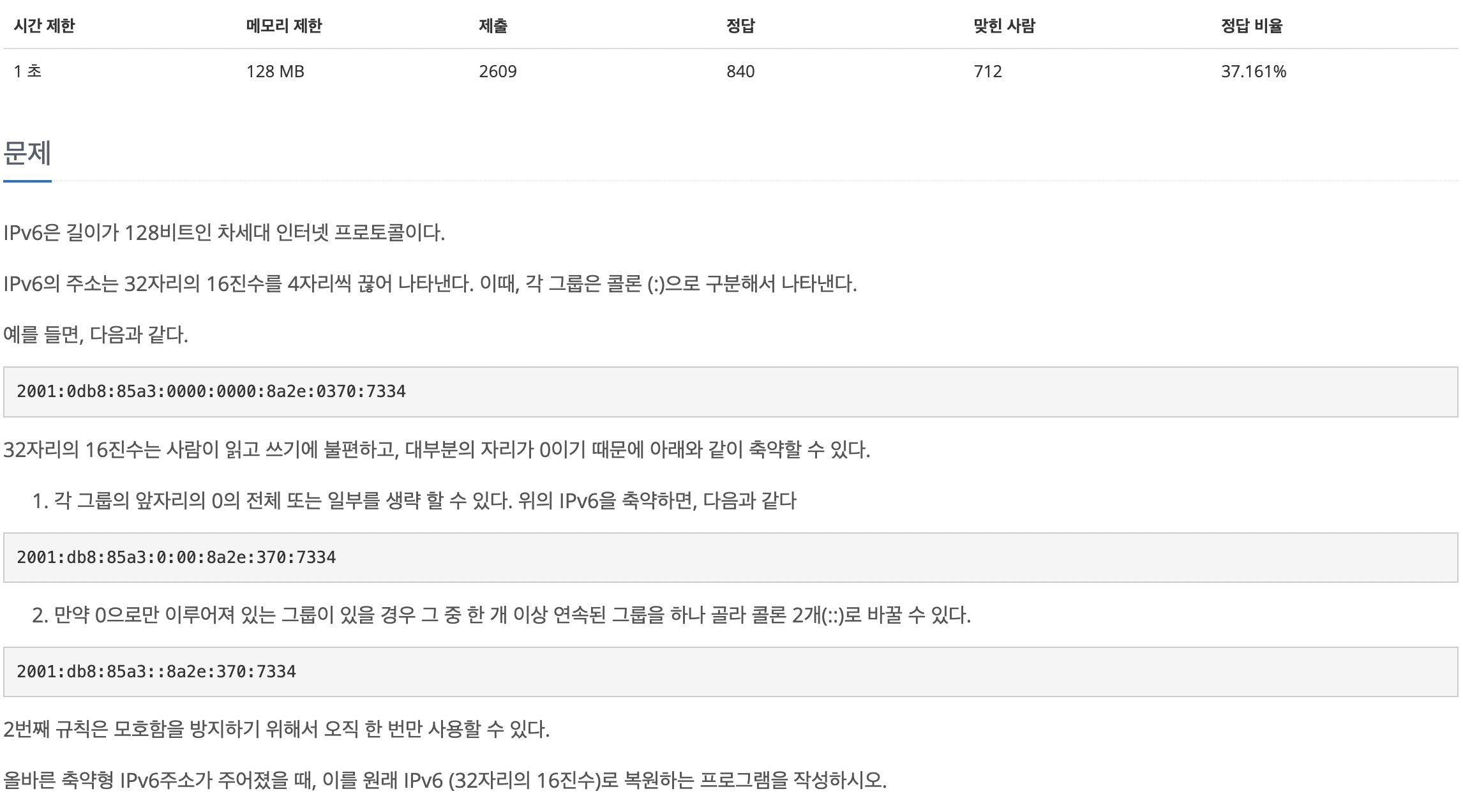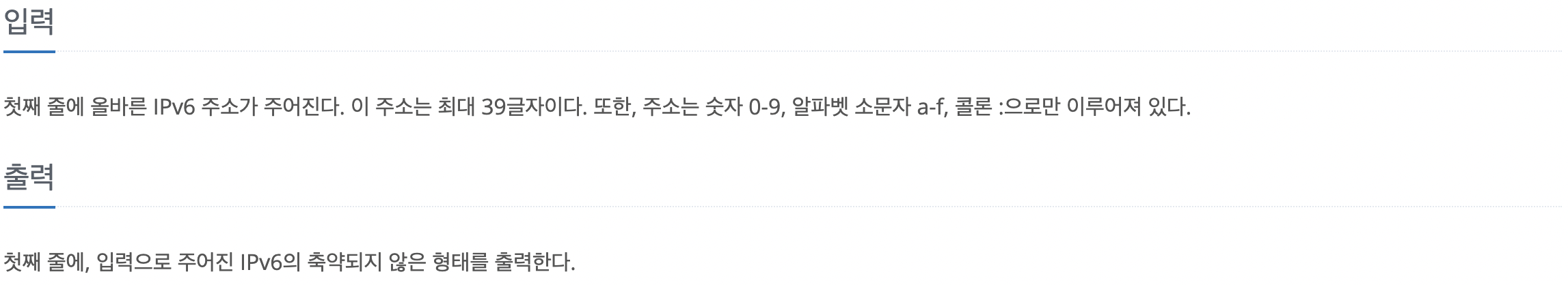 ! 해당 규칙을 토대로 축약된 IPv6 주소를 축약되기 전의 형태로 바꾸어 출력하는 문제 !