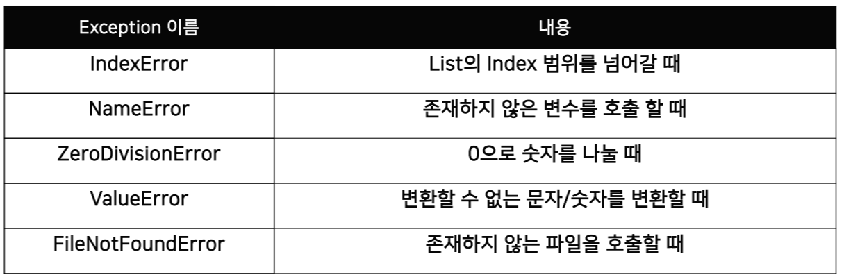 except Exception as e: # 특별히 지정하지 않은 에러 잡아줌! -> 어디서 에러가 발생한건지 모르는 단점이 있음(좋은 코드는 아닌 듯)
